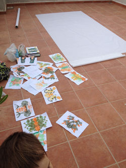Workshops to develop the projects were made essentially with my children Odysseas and Elias who patiently produced hundreds of paintings and worked hours with me.